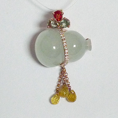 18K玫瑰金镶翡翠葫芦吊坠