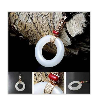 AU750镶和田玉吊坠