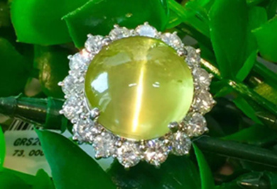 18K金镶嵌天然斯里兰卡金绿宝石猫眼戒指